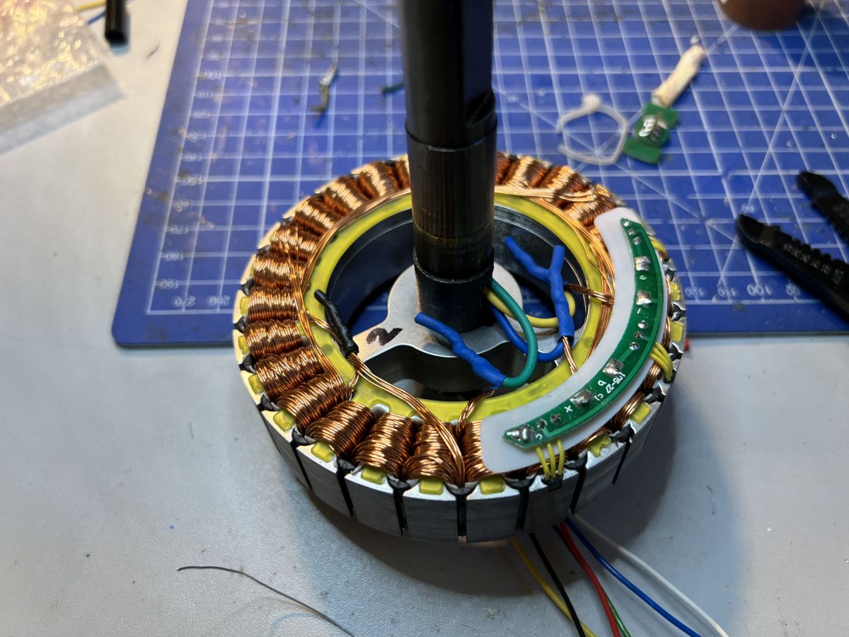 <figure><img src="https://content.gitbook.com/content/liPblHHYVNdK0NqFTupF/blobs/YkiMurI4jxMYXuLawPzY/IMG_90912.jpg" alt=""><figcaption><p>Fig.10. Stator of the hub motor with the AS5047p sensor installed</p></figcaption></figure>