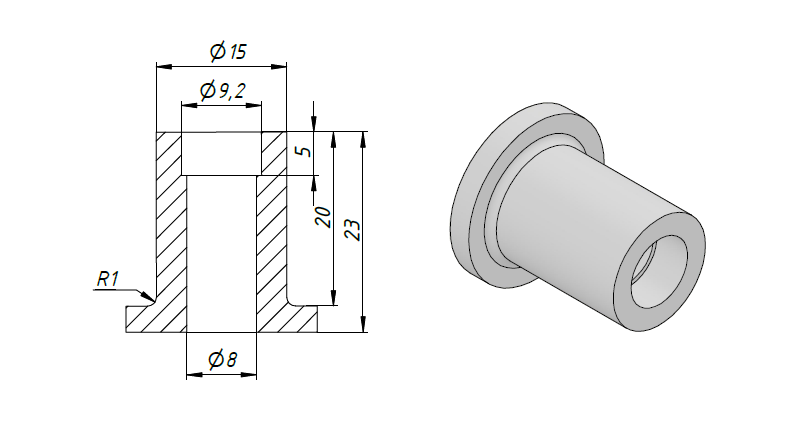 3. Bore the shaft for the sensor according to Fig. 5. First, make a 2mm-deep recess with a diameter of 12mm, then a 7mm-deep recess with a diameter of 9mm, and finally chamfer the edges. The chamfer closest to the edge is especially important—ensure the contact pads do not touch the shaft.