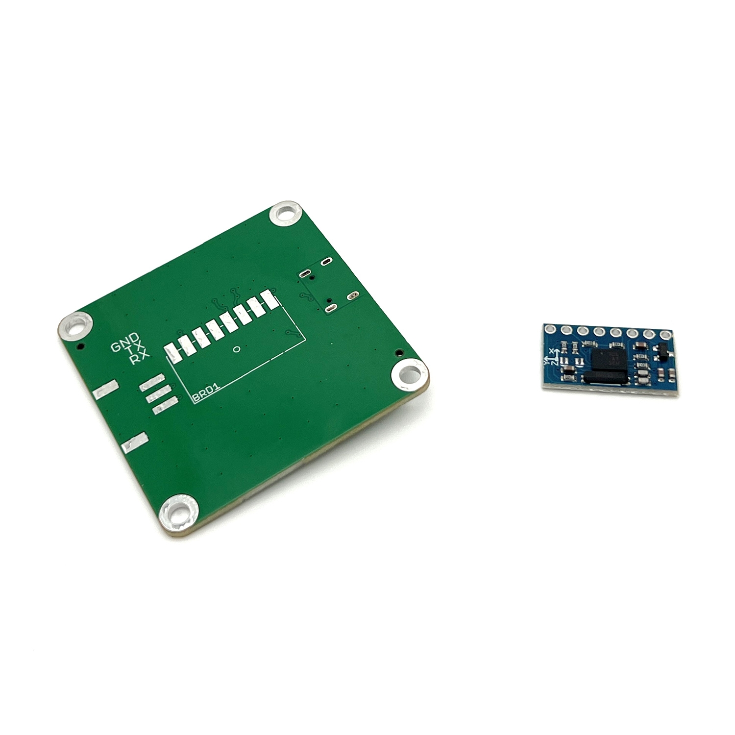 Для корректной работы устройства датчик BNO055 должен быть припаян к адаптерной плате и настроен для связи по UART с помощью конфигурационных перемычек: PS1 — открыто, PS2 — закрыто.